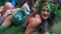 In the fantastical land of paradise, a wild orgy of costumeclad nymphs embraces their guests, unleashing their insatiable desires upon one another.As the air grows thick with tension and anticipation, men clad in fancy outfits, costumes that make them look like gods themselves, begin to mingle among the enchanting nymphs, whose luscious curves and bodies are concealed under their own scant clothing.These guests, a mix of couples, solo guys, and even some dudes in their own right, cannot help but be drawn to the mystique of these sexy creatures who have appeared from out of nowhere.The room is filled with an atmosphere of wild excitement as guests are greeted by the erotic display that awaits them nymphs wearing skimpy stockings and stockings, offering a teasing glimpse at the delights hidden beneath.The costumed men cannot resist the lure of these beguiling creatures and, one by one, begin to approach the nymphs.Each pairing is clothed in their own unique fantasy some engage in deep, passionate kisses with their partners as their hands wander over each others bodies, exploring every curve and crevice others take part in more explicit displays, like steamy blowjobs where men receive head from the nymphs.The room echoes with the sounds of moans, groans, and whispers that send shivers down spines.The nymphs are as eager to explore as their guests, not hesitating for a moment to engage in erotic acts like handjobs and even cock worshiping.Flickers of semenstreaked chins and necks speak volumes about the passionate encounters that have transpired thus far.With an air of frenzied intensity, the guests throw themselves into their carnal desires, their inhibitions washed away in a tidal wave of ecstasy.As one nymph swaps partners with another, the orgy becomes a whirlwind of heaving bodies and clashing skin against fabric as clothes begin to come off.Men sporting hats take it upon themselves to pleasure women who have no clothes left on, offering their expert skills in oral and pussy licking that drives the ladies wild with desire.These passionate encounters between guests, the men who are receiving blowjobs, and the nymphs themselves culminate in climactic facial expressions of sexual satisfaction as they find release through orgasms and semencoated skin.In this fantastical paradise filled with costumed nymphs who have embraced their guests in a hedonistic orgy, one can only dream of the fantastical experiences awaiting them, full of intense pleasure and sensations beyond compare.