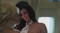 Lesbian flight attendants Intimate encounters aboard the airplane The scene starts with two attractive stewardesses on their break, wearing their tight uniforms with their hat placed at the side.They both share a secret glance and know what theyve been waiting for all day.Their fingers playfully touch each other, confirming that they are in sync about what is to come.One of them takes off her hat, and her blonde hair falls on her shoulders, creating an aura of sexiness around her.As the passengers are away on their business trips, these two lesbian flight attendants have the perfect opportunity to indulge in some sensual adventures.The girls begin by caressing each others uniform, feeling the texture and admiring their beauty.They move closer, sharing passionate kisses while their hands roam freely across each others body.As the passion builds up, one of them begins to unfasten her companions skirt, revealing her toned legs and the beginning of a shaved pussy that yearns for attention.The stewardess caressing the skirt spreads it wide open, showing off her moist pink labia, enticing her lover to take control.The woman in control now positions herself between her girlfriends thighs, getting closer to that wet cunt.She begins by licking the pussy gently with her tongue, spreading it and feeling the fleshy labia under her mouth.The moans start pouring out of the stewardess, making everyone on the airplane yearn for their own lesbian flight attendant encounter.As the oral sex becomes more intense, the girls can feel the sexual tension between them.Their hands move towards each others tits while they keep kissing and licking, spreading the cunt wide open as the other fingers the clit.The room fills with an air of horniness, fueled by their wild moans and labored breathing.Suddenly, one of the flight attendants decides to add some spice to their intimate encounter.She grabs a toy from her bag a vibrator! With a wicked smile, she turns it on full speed, making the other girls eyes sparkle with excitement.She places the vibrating object on her pussy, spreading her cunt even wider while the lover starts licking it vigorously.The horny stewardesses dont stop there they introduce a dildo to their play.One of them rams it deep inside her girlfriends wet cunt, fingering the labia at the same time.Their moans get louder, and their bodies are soaked in sweat, as they give into the pleasurable moment theyve been waiting for all day.As the girls climax together, their bodies tremble and hearts race with excitement.The airplane ride has become an unforgettable one for these two, as they share a passionate lesbian adventure in the sky, leaving everyone else on board to only imagine their own rendezvous with these tempting flight attendants.As the climax fades, the stewardesses kiss each other deeply, exchanging the passion and energy that fueled their secret encounter.They wipe off the sweat, take a deep breath, and get ready for another round of service in their uniforms, knowing therell be more adventures waiting in their future flights.